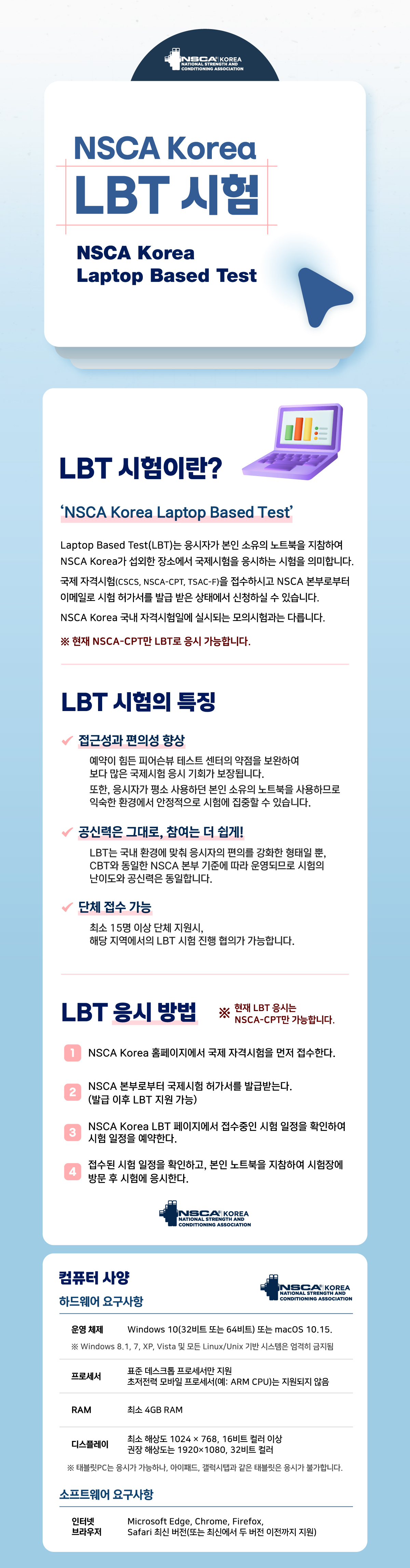 * 현재 NSCA-CPT만 LBT로 응시 가능합니다.