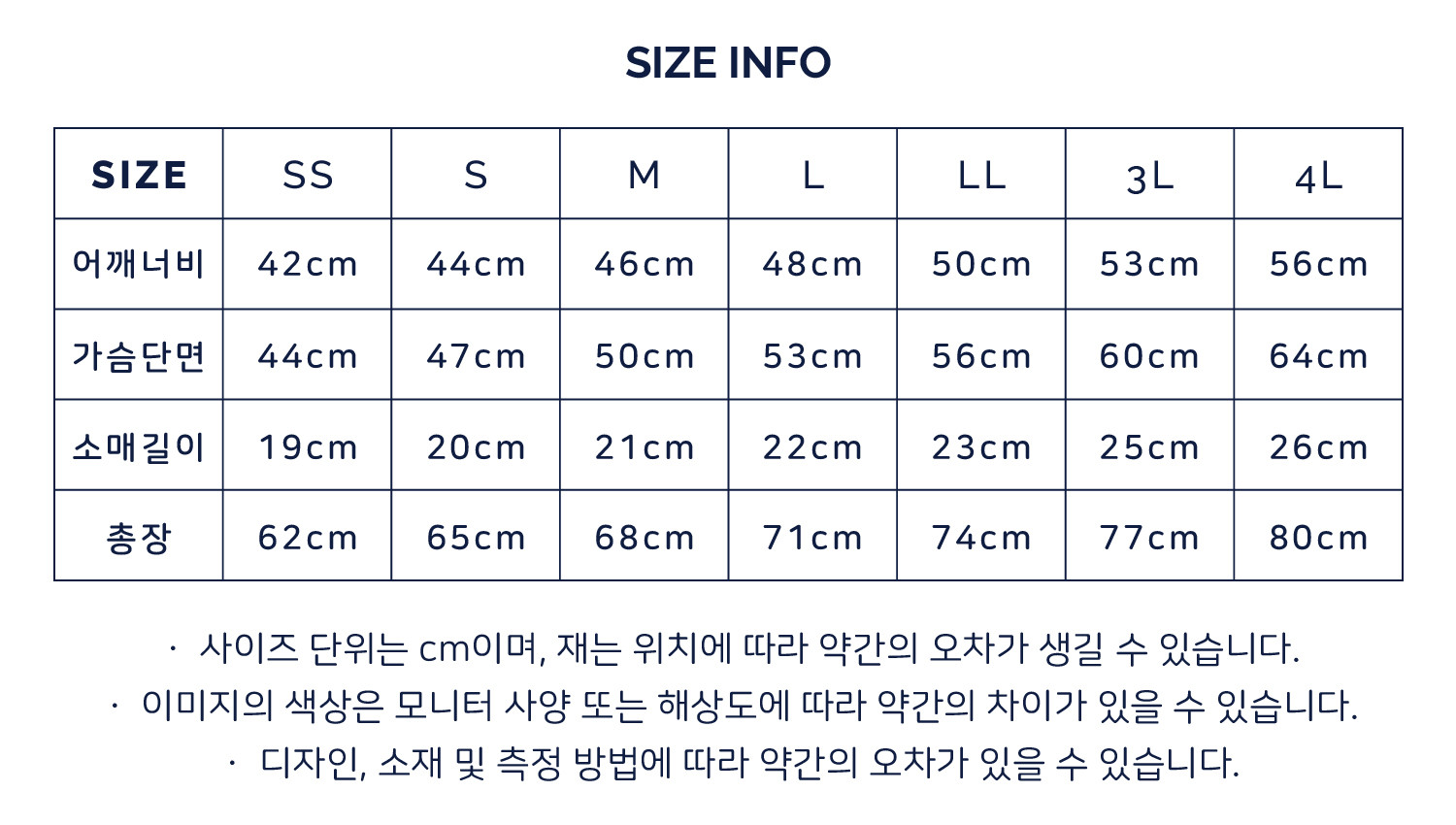 · 티셔츠 사이즈와 관련하여 문의에 답변이 어려우니, 위 티셔츠 사이즈표를 참고하시어 구매해주시기 바랍니다.